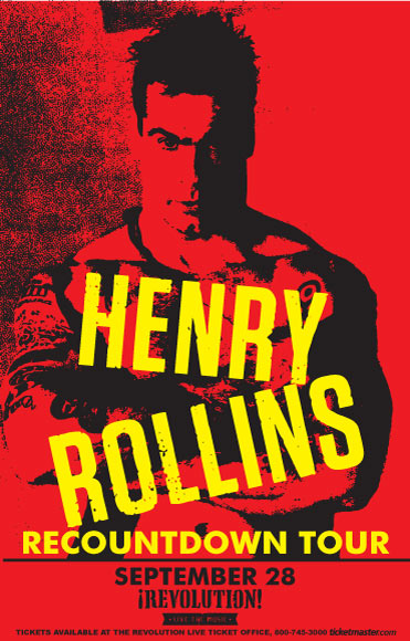 Henry Rollins 2008 Official poster for Recountdown Tour show the Fort Lauderdale show. 11 x 17 Glossy laser print.