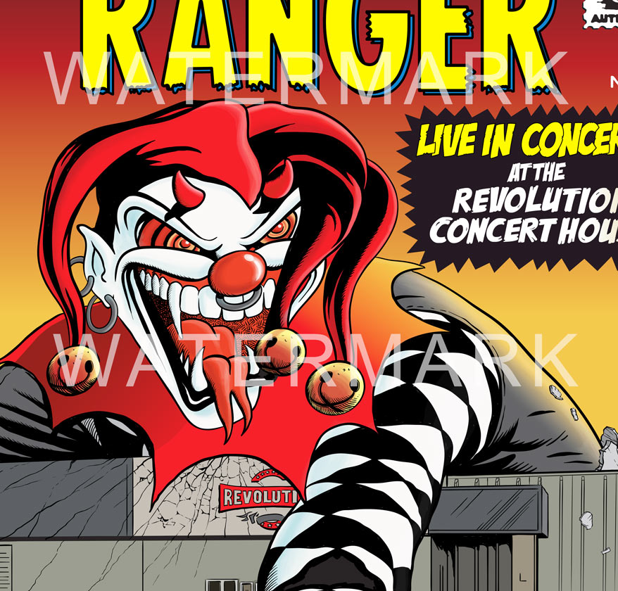 Night Ranger 2024 poster from the Revolution Center show in Garden City Idaho. The clown is from a sticker on Brad Gillis' famous red guitar